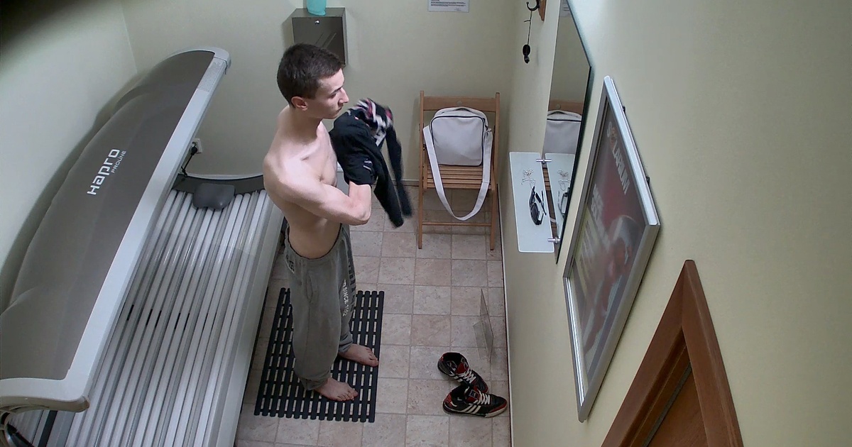 Czech Gay Solarium 1: Slim Twink Caught Stroking Solo in Solarium