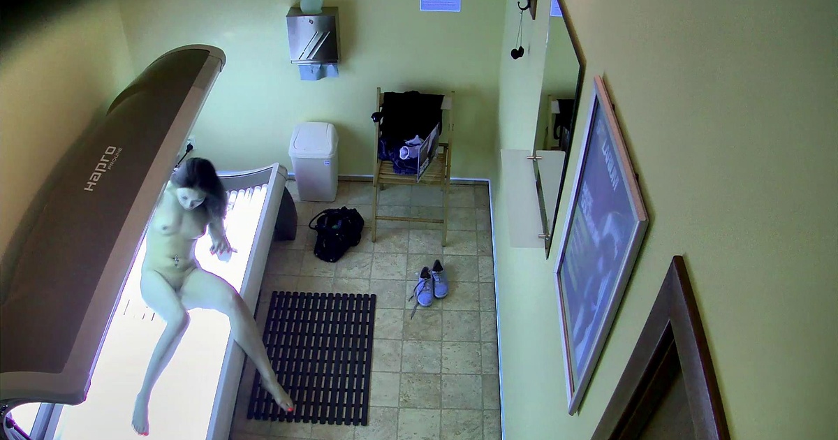 Czech Solarium 176: Teen Brunette Flashes Her Tight Pussy in Solarium